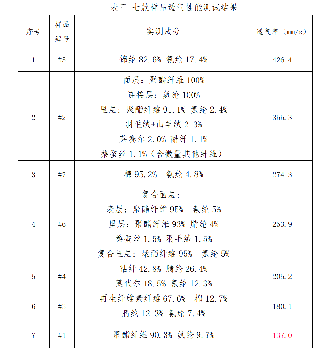 根据表三实验结果,聚酯纤维含量高的保暖内衣透气性普遍偏低。这类面料虽保温较好,但不利于湿气散发,长时间室内活动或易出汗人群穿着易感闷热,需要谨慎选择。